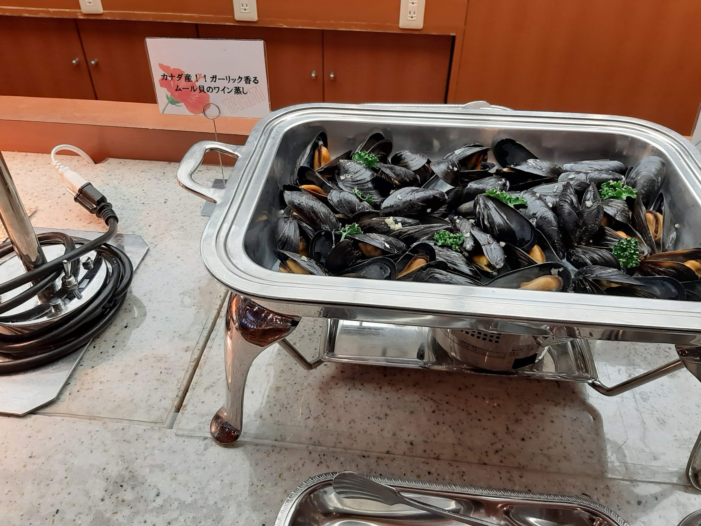ムール貝、カレー、ケーキは1日目と同じものが出ていました。