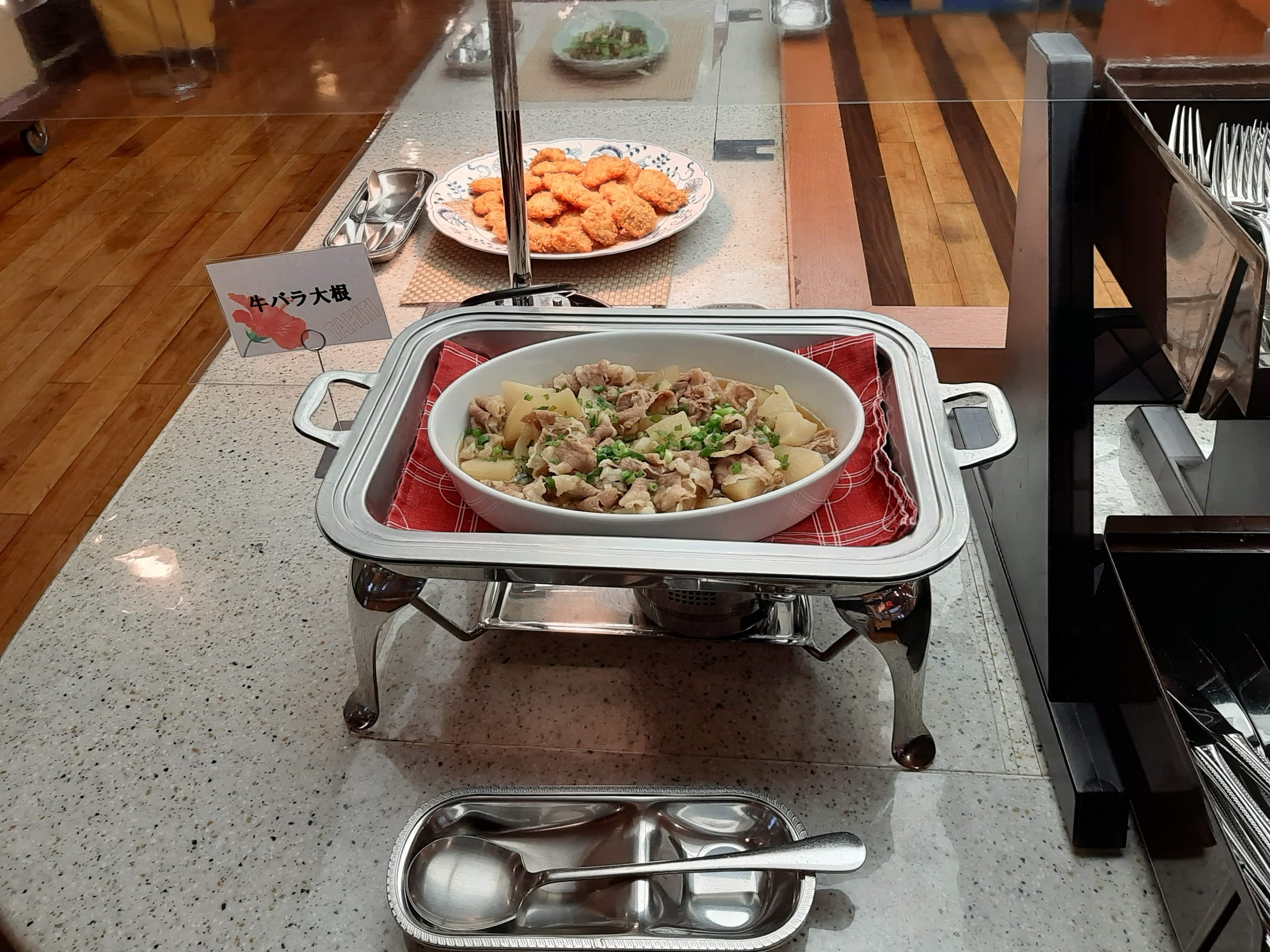 まずはテーブルに使用中の札を置いてバイキングスタート。